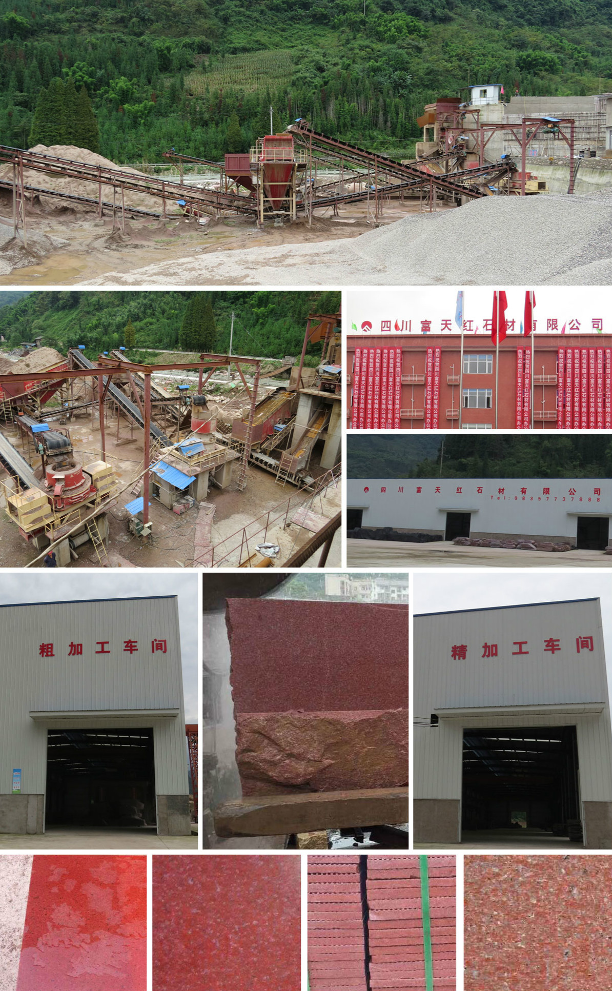 2015年9月,荥经富天矿业有限公司与荥经县红源石材有限公司重组成立四川富天红石材有限公司,公司注册资金3000万元,拥有0.48平方公里花岗石矿采矿权及矿山周围的2214.13亩林权,同时拥有占地103.5亩的石材加工基地。公司设备先进、工艺合理、技术成熟,年可生产花岗石等各类石材的各种型材200万平米。同时,利用花岗石尾矿年可生产120万立方米的砂石骨料。“规范管理、安全环保、质量服务”是我们的宗旨和持续发展战略,竭诚欢迎各界人士参观指导、商务洽谈、共同发展。